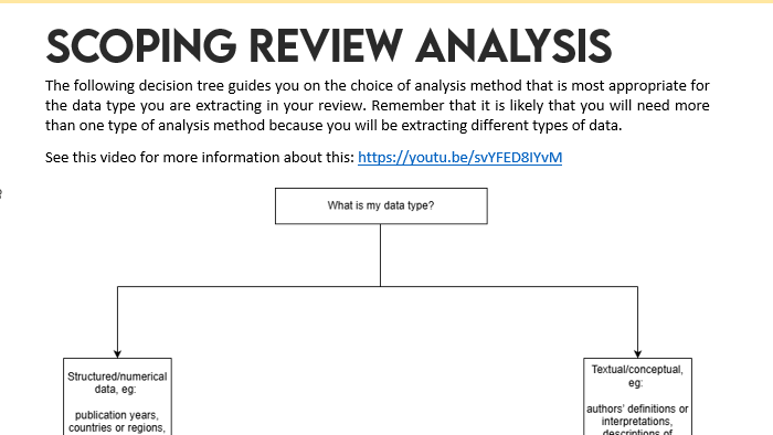 This is a tool to help you make decisions about the analysis method to use for your data extraction in your scoping review. See this video for more information and explanation.